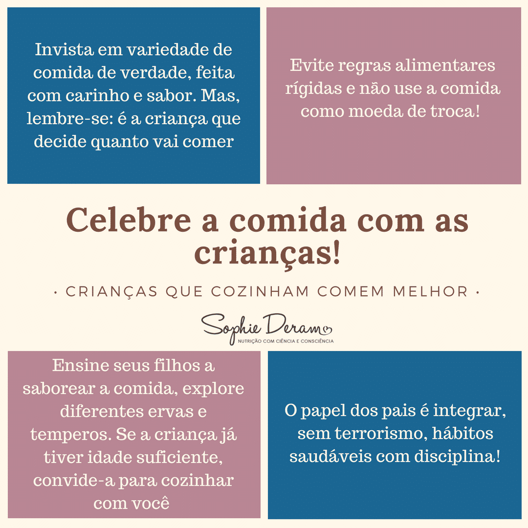 Com toda certeza, essa é uma questão relevante e fundamental para que a criança desenvolva, desde cedo, uma boa relação com os alimentos. Essa noção será levada para a vida adulta, assim como um paladar diversificado e uma curiosidade para novos sabores!