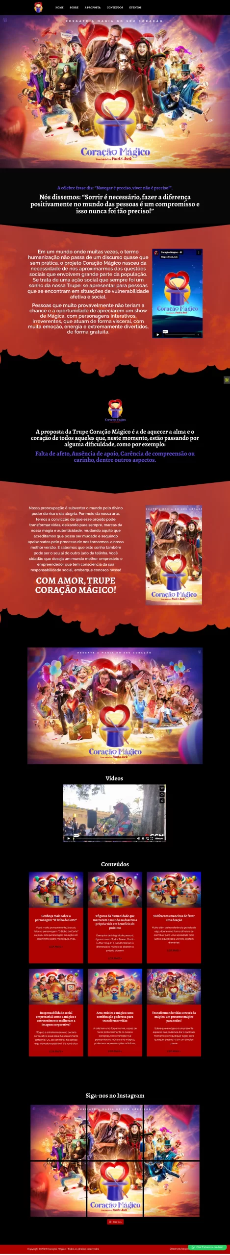 O cliente já fez 3 projetos conosco, esse é o terceiro. Coração mágico é uma projeto social para pessoas de baixo poder aquisitivo. Ajudando pessoas simples com diversão. e mágica.